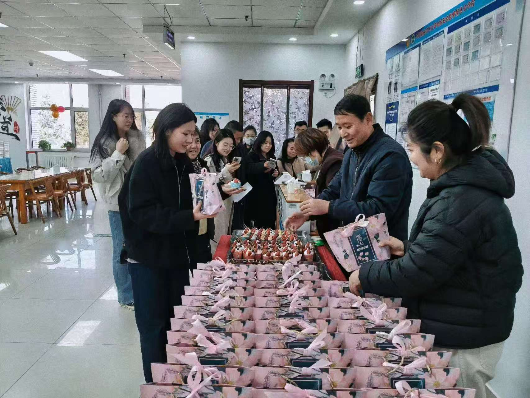 节日当天,教工餐厅焕然一新,处处洋溢着温馨与喜悦。餐厅特别为前来用餐的女教职工准备了多重惊喜:精致可口的节日甜品、贴心实用的小礼品,搭配一声声真挚的节日问候,让每一位女同胞在品味美食的同时,也深切感受到学校大家庭的温暖与关怀。